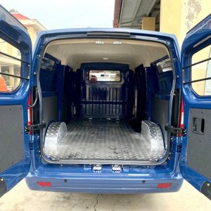 Mẫu xe van 5 chỗ V8 của Teraco được thiết kế để chở 2 người (lái xe và phụ) nhưng lại được thiết kế thùng xe vô cùng tiện dụng. Bao gồm 2 cửa hậu mở 90 độ hoặc 180 độ – giúp lên xuống hàng dễ dàng. Kể cả dùng xe nâng hạ để đưa hàng vào thùng. Kèm theo là cửa lùa bên hông để lấy hàng bên trong thùng dễ dàng hơn.