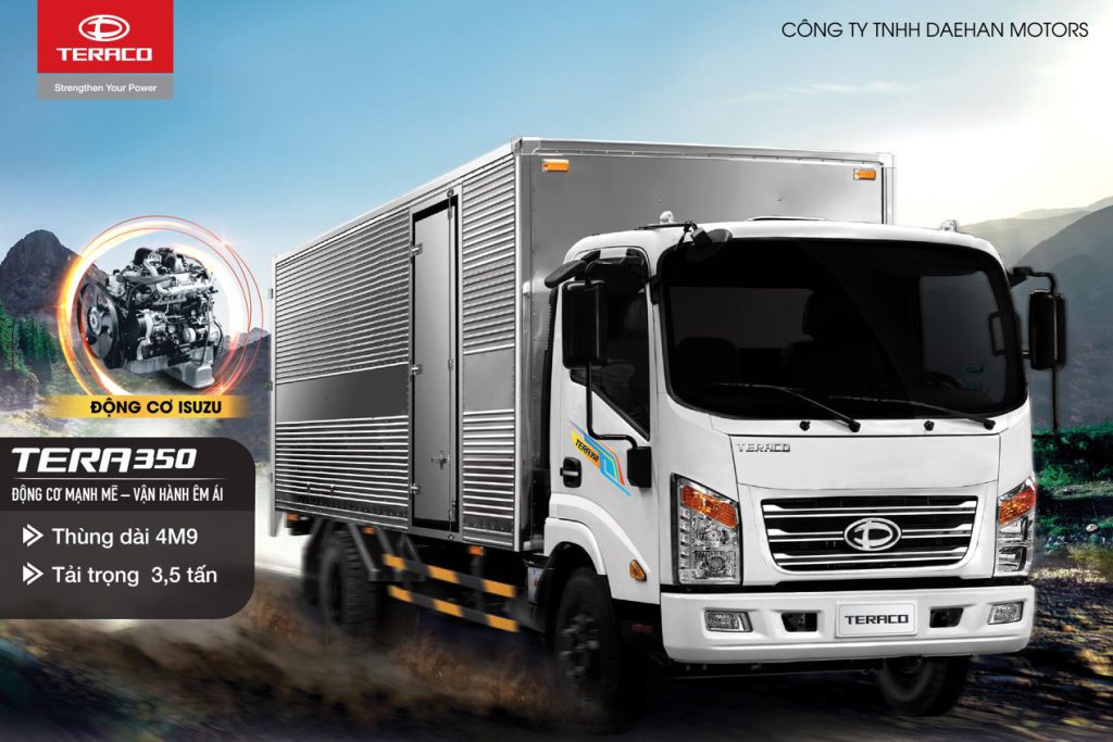 Tiếp nối sự thành công vang dội của Tera 345SL trong phân khúc ‘thùng siêu dài 6m’, Tera 350 thùng kín là sản phẩm kế thừa toàn bộ những điểm mạnh của “đàn anh” Tera 345SL với động cơ ISUZU công nghệ Nhật Bản, chiều dài ‘phổ thông’ hơn trong phân khúc tải trọng 3.49T. Thùng hàng của xe Tera 350 có chiều dài lên đến 4m9 – dài nhất trong phân khúc, vượt trội so với đối thủ cạnh tranh, là giải pháp kinh tế tối ưu đáp ứng nhu cầu chuyên chở hàng hóa thông dụng của khách hàng.