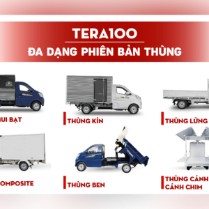 Nắm bắt được xu hướng của thị trường, TERA100S đa dạng hóa các loại thùng khi nâng cấp từ 3 loại thùng cơ bản lên đến 6 phiên bản thùng khác nhau: thùng kín, thùng lửng, thùng mui bạt, thùng mui bạt mở bửng, thùng composite và thùng cánh dơi/cánh chim, nhằm phục vụ tốt nhất cho nhu cầu vận tải của khách hàng. TERA100S được đánh giá có thiết kế thùng hàng đẹp, tỉ mỉ, chắc chắn với chất lượng tốt. Riêng mẫu loại thùng cánh chim, TERA100S chiếm ưu thế với thiết kế độc đáo, đẹp, tiện dụng được rất nhiều khách hàng ưu tiên lựa chọn.